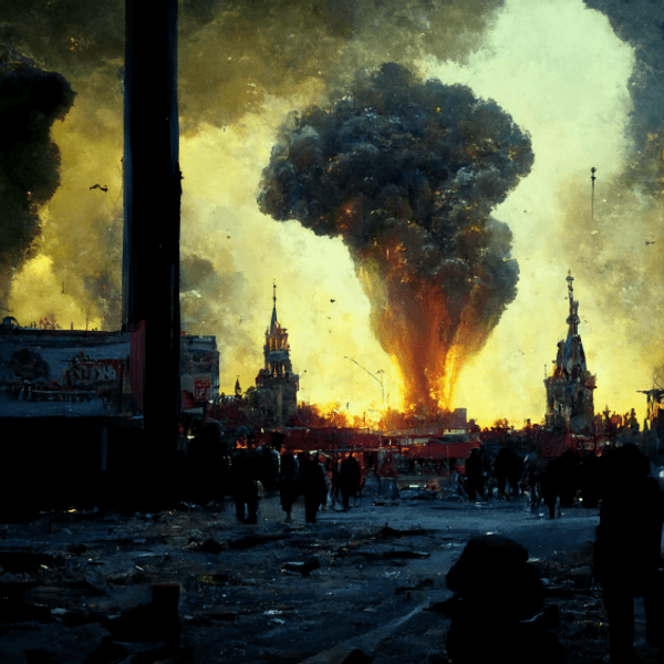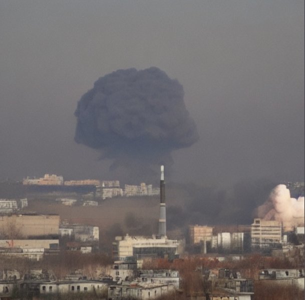 На тлі успіхів української армії з'являється все більше побоювань, що Росія застосує ядерну зброю. Нейросети MidJourney і Stable Difussion на запит Фокусу зобразили, як можуть виглядати перші секунди після удару.