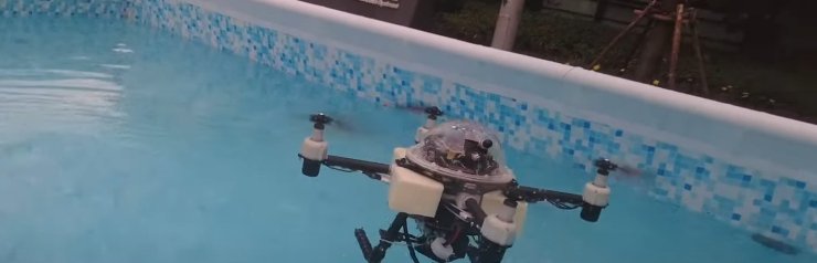 Команда з Китайського університету в Гонконгу під керівництвом Бена Чена створили прототип пристрою вагою 1,63 кг та завширшки 38 сантиметрів. Він отримав чотири двигуни, розташовані як у квадрокоптера, кожен з них оснащений двоступінчастою коробкою передач та кріпленнями для зміни положення гвинтів. Заряду акумулятора вистачає на шість хвилин польоту або 40 хв. роботи під водою