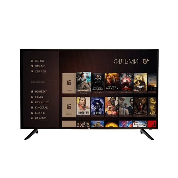 Основні програми на телевізор G+ уже встановлено, їх можна відшукати на головному екрані. Кінострічки та серіали відображаються на екрані у каталогізованому вигляді — з обкладинками та описом. Полегшують користування фільтри, сортування за жанрами, тематикою, добірки та рекомендації. Щоб зануритися у кіноісторію, достатньо просто підключити телевізор до Wi-Fi.