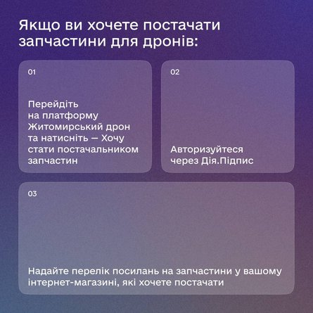 "FPV-дрони давно показали ефективність на фронті. "Пташки" допомагають прицільно знищувати ворога та зберігати життя військових. Уявіть, якби кожен українець міг збирати FPV-дрони й допомогти армії ще більше. А уявляти не потрібно — достатньо авторизуватися з Дія.Підписом на інформаційній платформі Житомирський дрон, яку запустила Житомирська міська рада. Верифікація акаунту з Дія.Підписом потрібна для того, щоб тільки українці мали доступ до платформи", — йдеться в повідомленні.