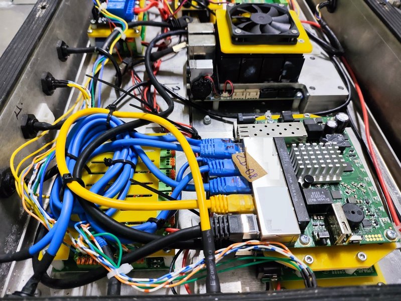 Потоки даних від Starlink стікаються в роутер Mikrotik RB962: "Мабуть, керування на Starlink організовано через тунелі". У центрі також є якийсь комп’ютер, яки росіянину не дали розібрати й навіть зняти з нього вентилятор охолодження.