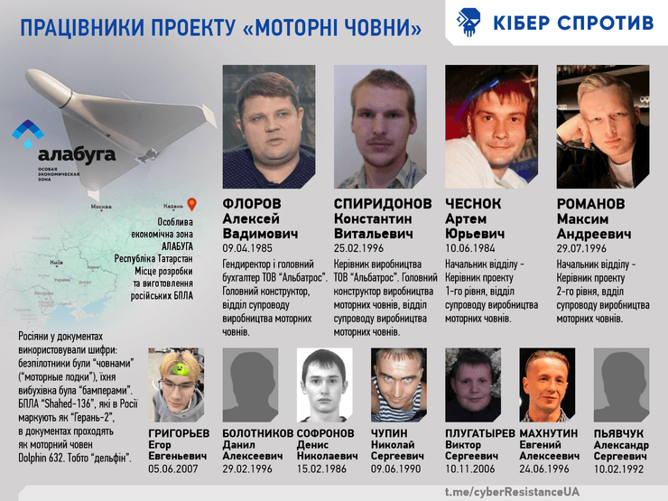Також до виробництва БплА в Алабузі причетний керівник одного з департаментів у групі "Управління" відділу виробництва "моторних човнів" Євгеній Махнутін. Він — рекрутер, що влаштувався в "Алабугу" ще в листопаді 2022 року. Потрібні кадри він шукає не тільки для виробництва БпЛА, але й загалом для інших резидентів особливої економічної зони. Раніше Махнутів їздив територією РФ і закликав студентів вишів переїздити в Єлабугу.