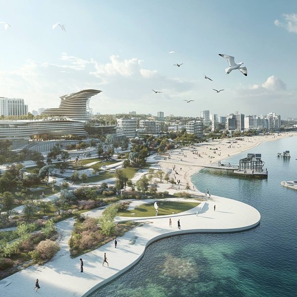 "Відновлений після руйнувань, Маріуполь виглядає як зелене, інноваційне місто, де екологічні рішення гармонійно співіснують з сучасною архітектурою", — йдеться у підписі до фото.