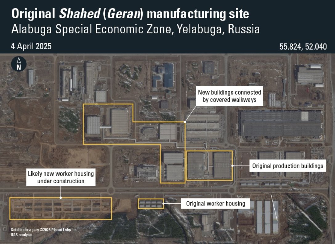 Зазначимо, що в "Алабузі" є військовий завод, побудований 2023 року, на якому, зокрема, виробляють ударні дрони "Шахед". Супутникові знімки від квітня 2025 року показують, що об'єкт збільшився вдвічі, і поблизу від початкового місця з'явилося щонайменше п'ять нових будівель.