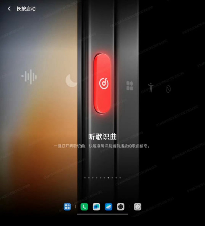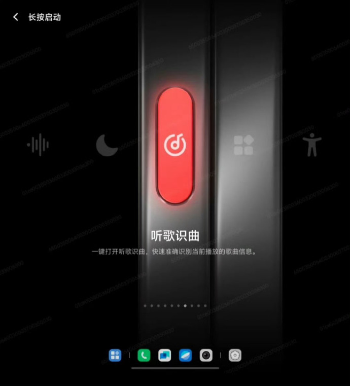 Значки в цьому інтерфейсі дозволяють припустити, що за допомогою цієї кнопки користувачі, зокрема, зможуть відключати звук X Fold 5, запускати камеру, вмикати ліхтарик, виконувати пошук пісень і вмикати режим "Не турбувати".