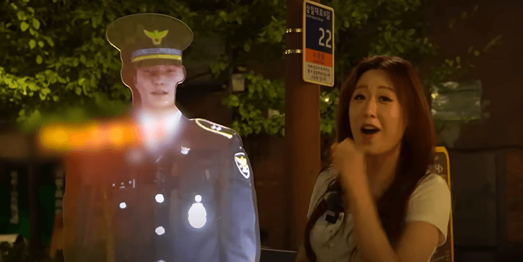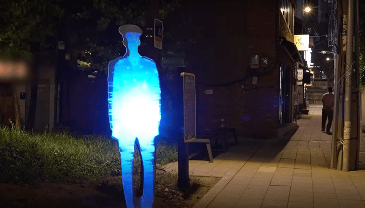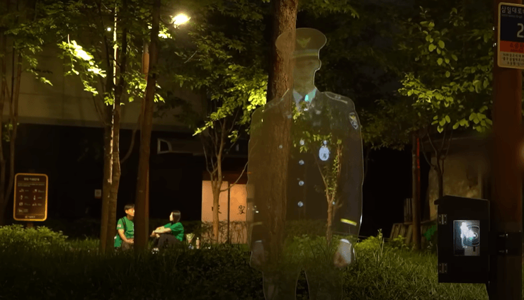 Щовечора в одному з парків жвавого району Чон-гу в Сеулі з'являється 3D-голограма поліцейського, яка розповідає перехожим, що "в надзвичайних ситуаціях поліція відреагує негайно" і що "скрізь є камери відеоспостереження", повідомляє ресурс Odditycentral.