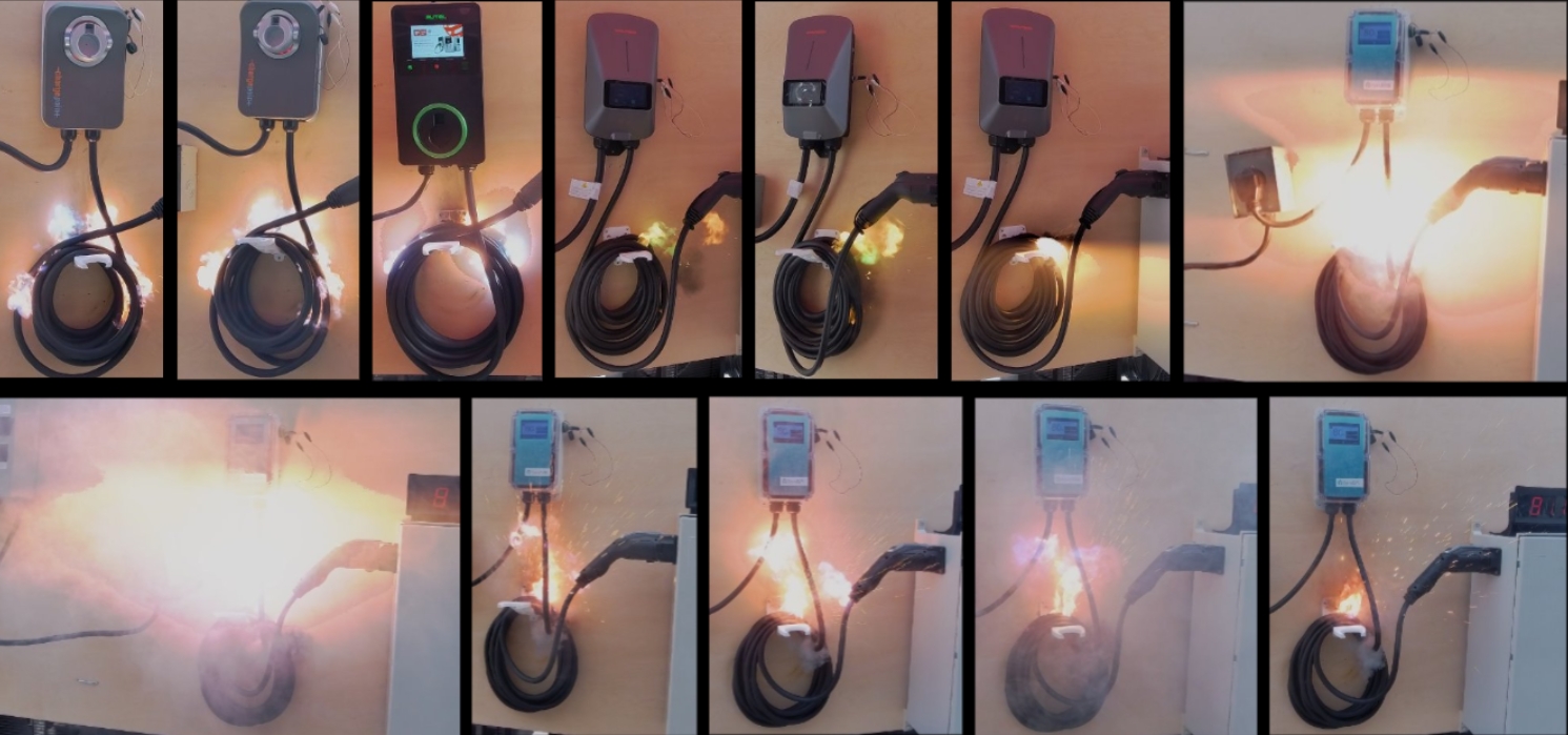 Кабель зарядної станції електромобіля загорівся під час випробування | Фото: Скриншот