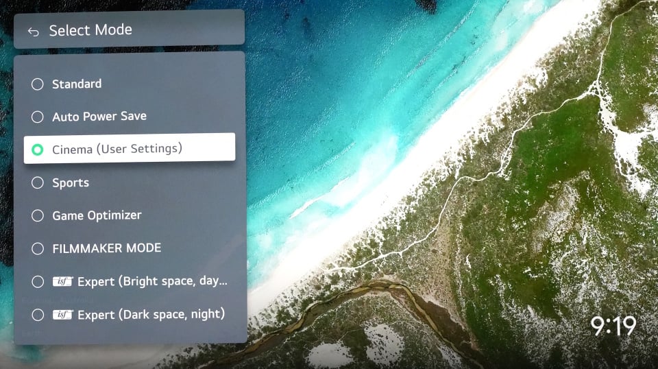 Режим зображення, орієнтований на фільми, зазвичай забезпечує найбільш точну передачу кольору, він може називатися "Кіно", "Кінотеатр", "Театр", "Кінорежисер", ISF. Якщо такий режим доступний, варто вибрати його.