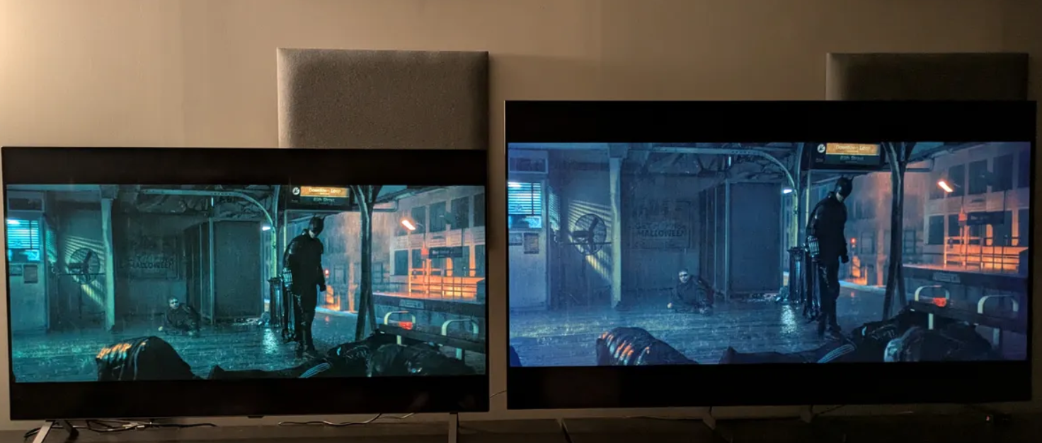 Зображення B5 з Dolby Vision продемонструвало відмінну контрастність і глибину чорного кольору. Зображення S85F з HDR10 давало більш яскраве зображення, і через це обличчя героя на екрані виглядало блідішим. Загалом обидва телевізори показали хороші результати, але B5 все ж мав невелику перевагу завдяки більшій глибині чорного.