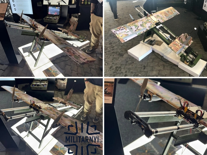 Українська компанія Vyriy Drone представила на інвестиційному саміті Defense Tech Valley 2025 від Brave1 новий дрон-камікадзе «Блискавка».