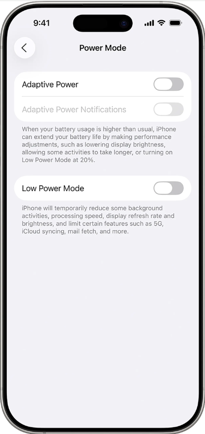 За замовчуванням Adaptive Power увімкнено тільки на смартфонах нової лінійки — iPhone 17, iPhone Air, iPhone 17 Pro і iPhone 17 Pro Max.