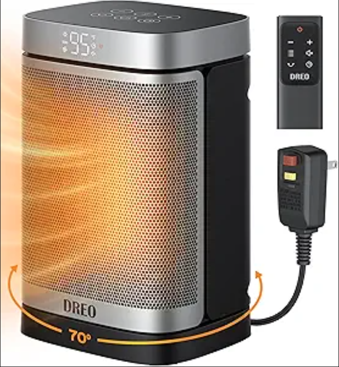 Ще один портативний керамічний обігрівач. Оснащений цифровим термостатом, таймером на 12 годин, є осциляція на 70 °C, чотири режими і пульт дистанційного керування.