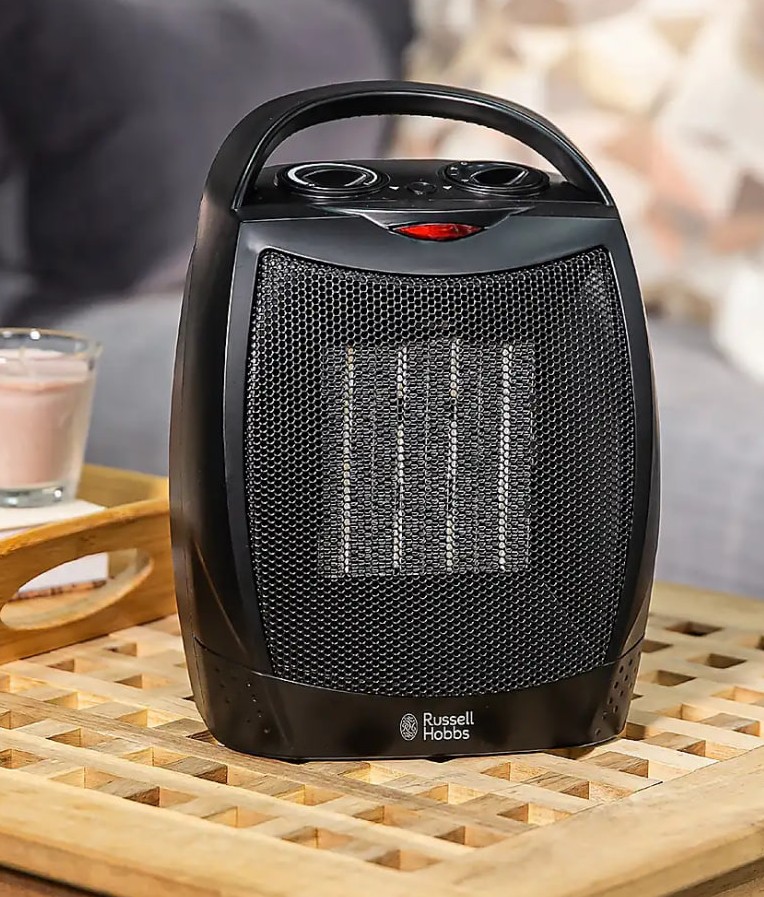 Компактний керамічний обігрівач Russell Hobbs отримав хороші відгуки користувачів, зокрема за здатність швидко обігрівати невеликі приміщення та зручні налаштування.