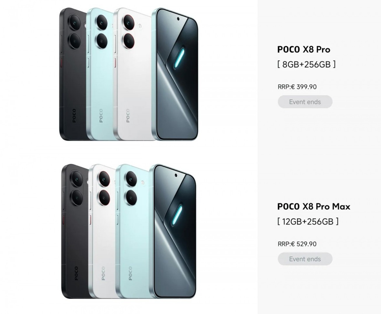 Ціни та зображення Poco X8 Pro і X8 Pro Max із сайту бельгійського ритейлера