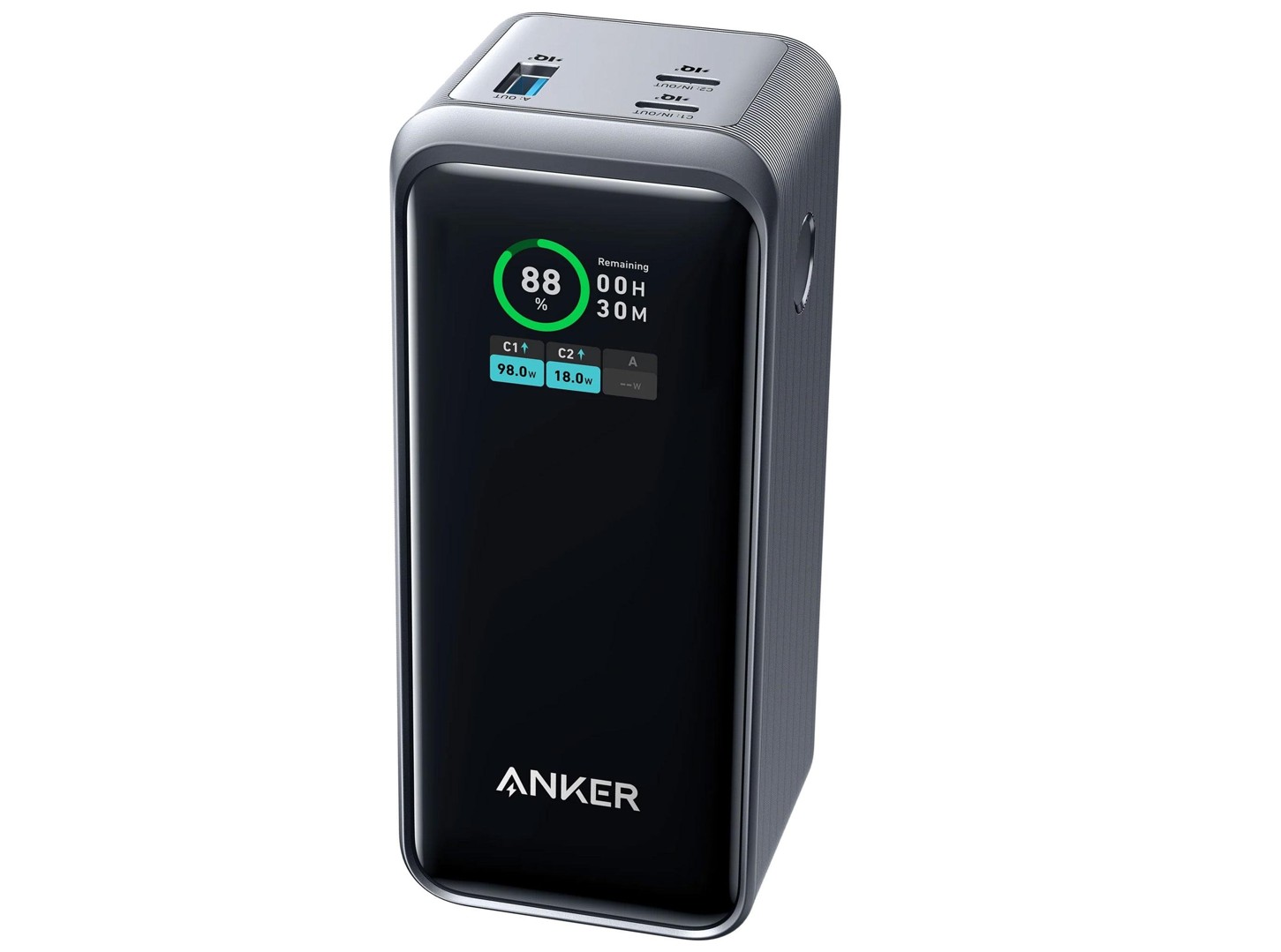 Щоб повербанк заряджався заявленими 100 Вт за півтори години, необхідно використовувати фірмові або строго сумісні зарядні блоки з потрібними протоколами. Наприклад, Anker Prime Charger (250W, 6 Ports, GaNPrime). При підключенні невідповідних адаптерів живлення від інших брендів (навіть високої потужності від Ugreen) швидкість заряджання може падати до 30-35 Вт і зазвичай не перевищує 67 Вт, зазначили у відгуках.
