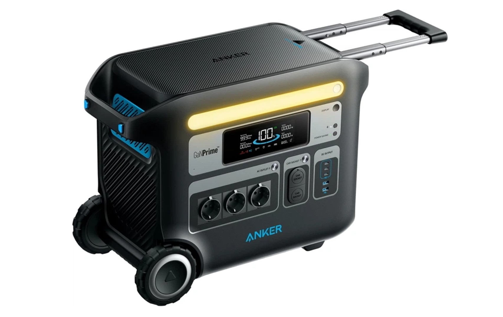 Передбачено 10 виходів для одночасного підключення приладів. Серед них: три класичні розетки 230 В, три порти USB-C з підтримкою швидкої зарядки, два порти USB-A і два виходи постійного струму (прикурювач).