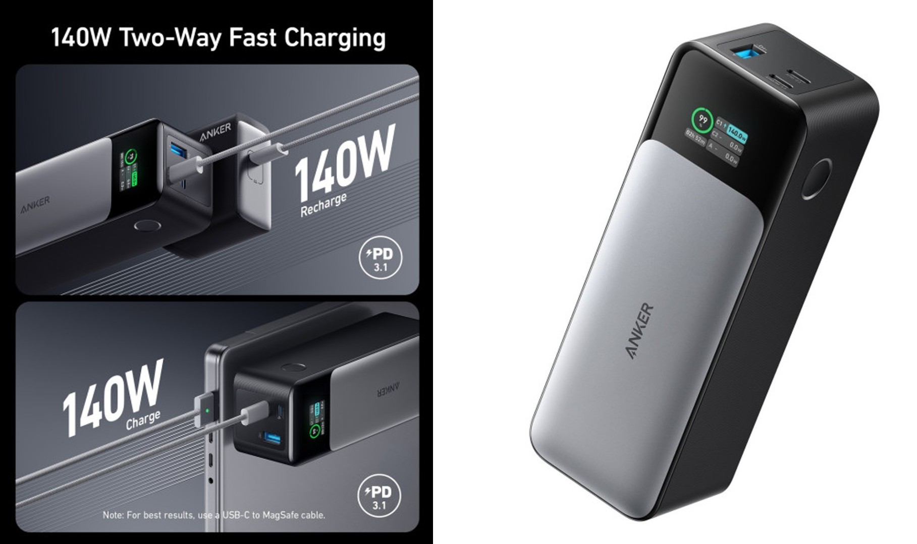 Підтримується поширений протокол швидкої зарядки Power Delivery 3.1. За безпеку експлуатації відповідає передова система ActiveShield 2.0, чиї датчики вимірюють температуру пристрою, щоб запобігти перегріванню. Повербанк також приймає і на вхід до 140 Вт для швидкої зарядки. Покупці відзначають високу потужність, якої вистачить для більшості ноутбуків, а також зручність розумного дисплея, однак варто зважати на солідну вагу (630 г) і високу вартість гаджета, яка зумовлена технологіями свіжого покоління.