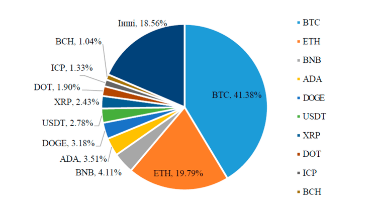 Частка ринку TOP10 криптовалют у загальному ринку криптовалют