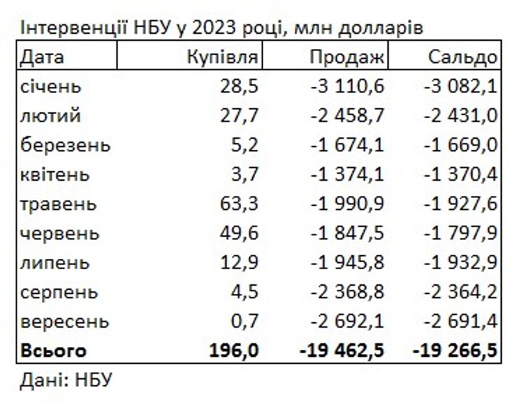 А з початку 2023 року Нацбанк, щоб утримати баланс на валютному ринку, продав 19,267 мільярда доларів.