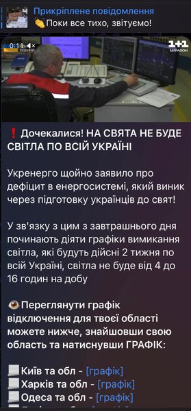 Зокрема, у поширених фейкових повідомленнях посилаються начебто на заяву "Укренерго" та заявляють, що "з завтрашнього дня" та протягом двох тижнів нібито діятимуть графіки відключення світла.
