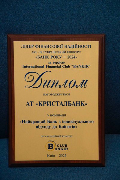 За свою роботу банк нещодавно отримав нагороду "Найкращий банк з індивідуального підходу до клієнтів" на XVI Всеукраїнському конкурсі "Банк Року-2024" від International Financial Club "BANKIR".