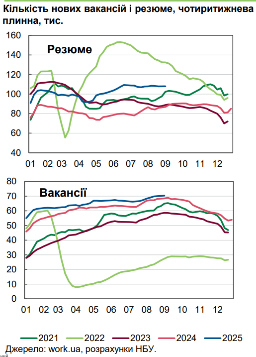 На ринку праці ситуація залишається неоднозначною. У серпні кількість нових резюме зросла на 28% у річному вимірі, тоді як кількість вакансій збільшилася лише на 3%. Водночас темпи зростання пропозиції робочої сили поступово сповільнюються.