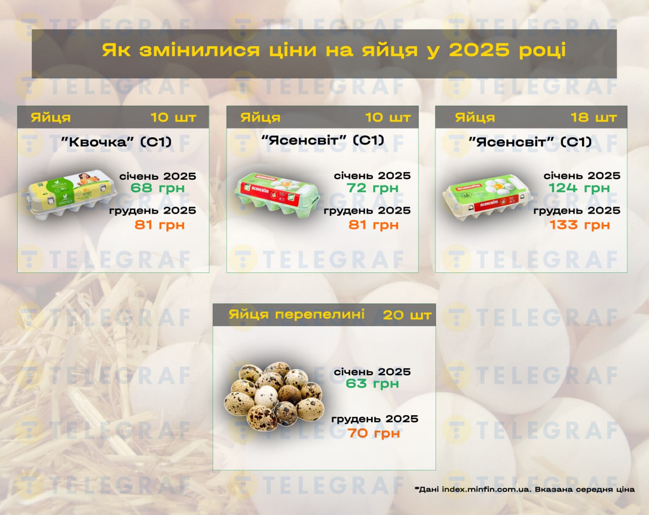 Яйця також увійшли до переліку продуктів із помітним зростанням вартості. Протягом року їхня ціна зросла приблизно на 15 гривень.