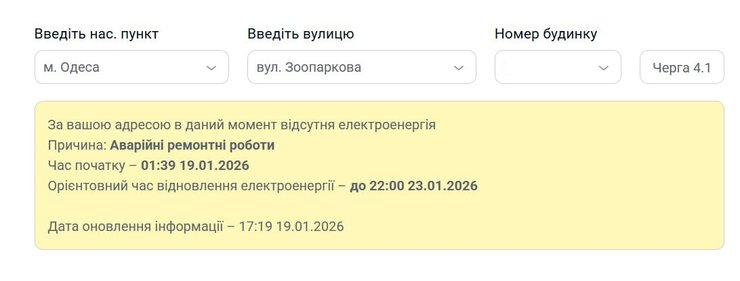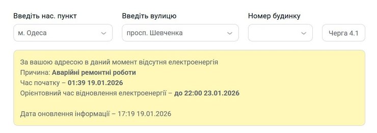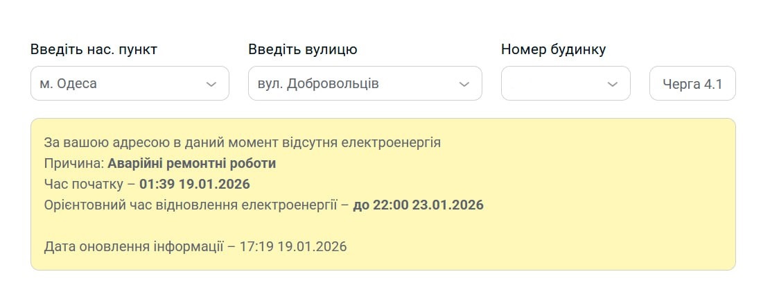 З п'ятниці 16 січня Одеська область поділилася на дві частини — у частині повернулися графіки відключень світла, а в частині — продовжують діяти аварійні відключення. Енергетики пояснили, що ту частину, де надалі діють аварійні відключення, неможливо повернути до погодинних графіків через серйозні пошкодження після обстрілу ЗС РФ.