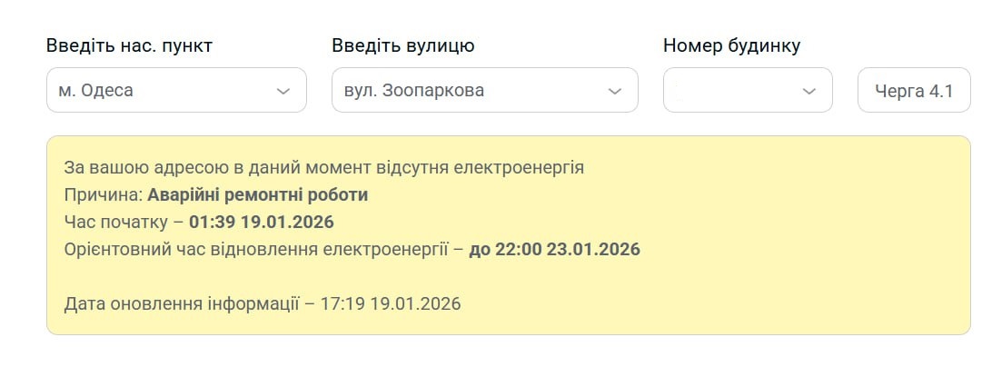 На сайті ДТЕК за певними адресами уточнюється, що світло нібито буде відсутнє до 23 січня включно.