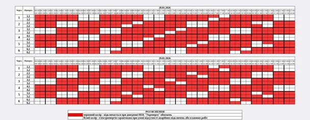 У четвер, 29 січня, у споживачів деяких груп світла упродовж доби не буде понад 17 годин. По всій Україні запроваджуються обмеження електроенергії.