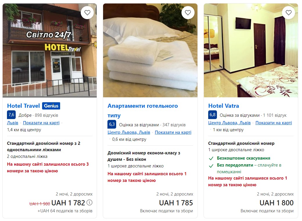| Львів | 1400-3500 | 4500-8000 | Мережа + генератори (90% готелів) |