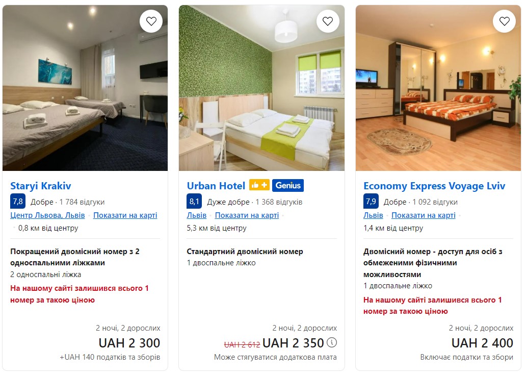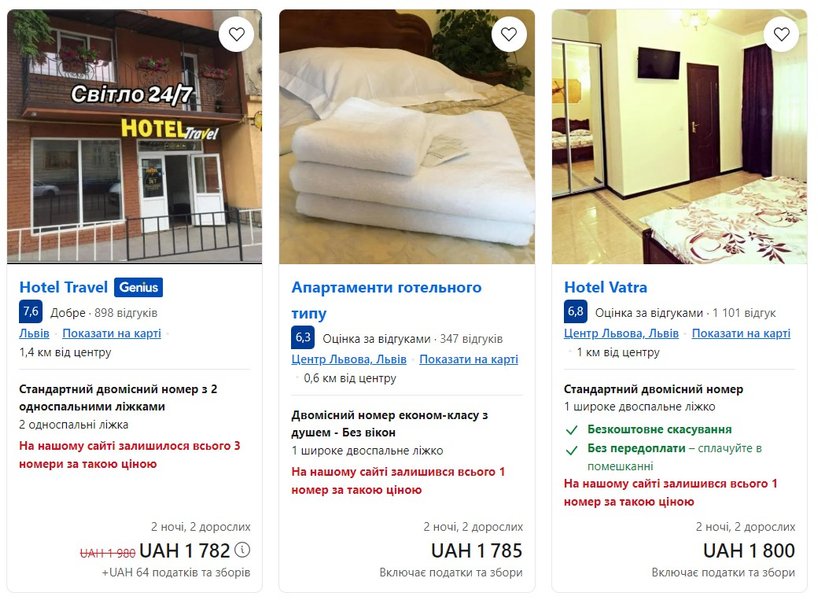 Попри війну, попит на короткі подорожі на День закоханих в Україні залишається стабільним. Пари бронюють Карпати, Закарпаття, Львів і передмістя Києва. До побажань із видом на гори, затишним номером і СПА додаються такі актуальні опції, як наявність генератора, автономного опалення, стабільного зв’язку та укриття. Ціни на готелі стартують від 800-2 500 грн на добу за стандартний номер для двох до понад 23 000 грн за будиночок на компанію, залежно від локації.