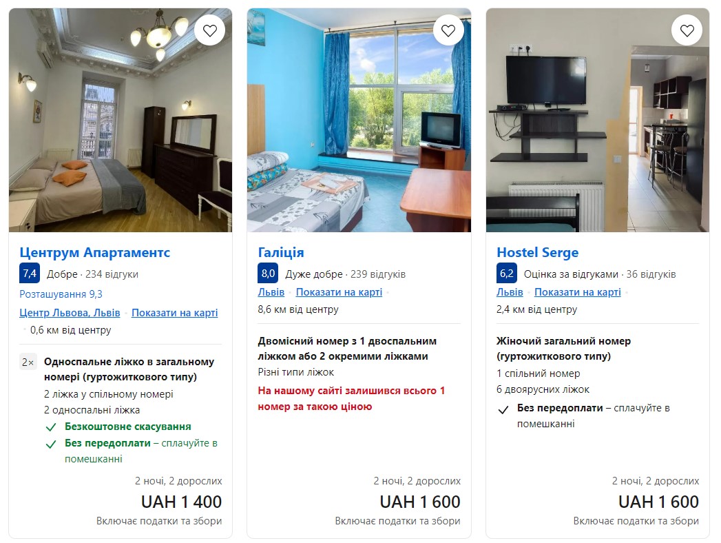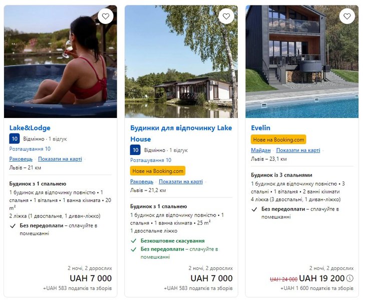 Вартість оренди будинків стартує від 3 000 грн, тоді як двомісний номер у готелях різного класу можна знайти від 1 400 грн.