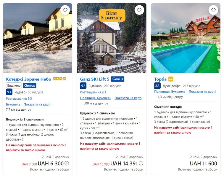 У туристично популярних напрямках, зокрема в Буковелі, Києві та Київській області, оренда будинків до 14 лютого 2026 року стане дорожче. Тут ціни формуються не лише за рахунок локації, а й через наявність додаткових сервісів і попиту у період свята закоханих.