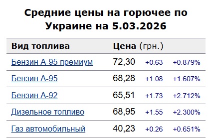 Згідно з даними ресурсу "Мінфін", 5 березня середні ціни на ключові позиції палива продовжили своє зростання.