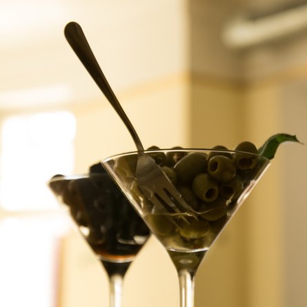 Коли оливки подаються як закуска, їх можна брати руками. Якщо оливки додано до страви, наприклад, салату, то їх їдять виделкою. Оливку в келиху мартіні можна з’їсти після того, як напій буде випито.