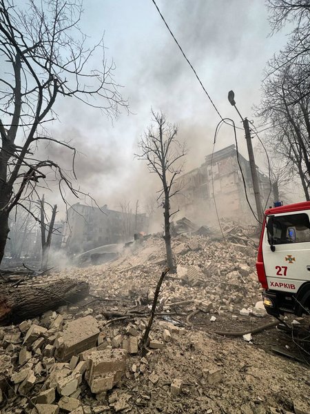 У Харкові окупанти вдарили по Київському та Салтівському районах, попередньо ракетами Х-22. Загинули п'ятеро людей, ще 51 отримала поранення. Зруйновано багатоквартирні житлові будинки, навчальний заклад та іншу цивільну інфраструктуру, в одній із найпостраждаліших частин Київського району немає світла і частково води, заявив мер міста Ігор Терехов.