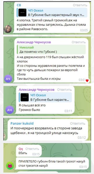 Росіяни у місцевих пабліках всю ніч скаржилися на серію гучних вибухів у районі нафтобази в Бєлгородській області.