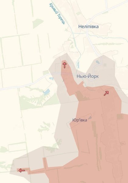 "Створюється загроза виходу в тил угрупованню ЗСУ, яке веде бої в самому Нью-Йорку: російські штурмовики продовжують поступове просування по дорозі від Залізного в бік Неліпівки", — пишуть в Telegram-каналах.