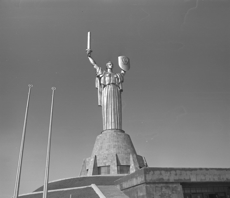 Чому саме герб СРСР опинився на щиті? Бо монумент задумувався і будувався як елемент радянського меморіалу про Другу світову війну — у системі символів, де "правильний" знак на щиті не обговорювався. Це й стало головною причиною, чому після 1991 року в Україні десятиліттями співіснували незалежність і радянський герб на найбільшій київській скульптурі.