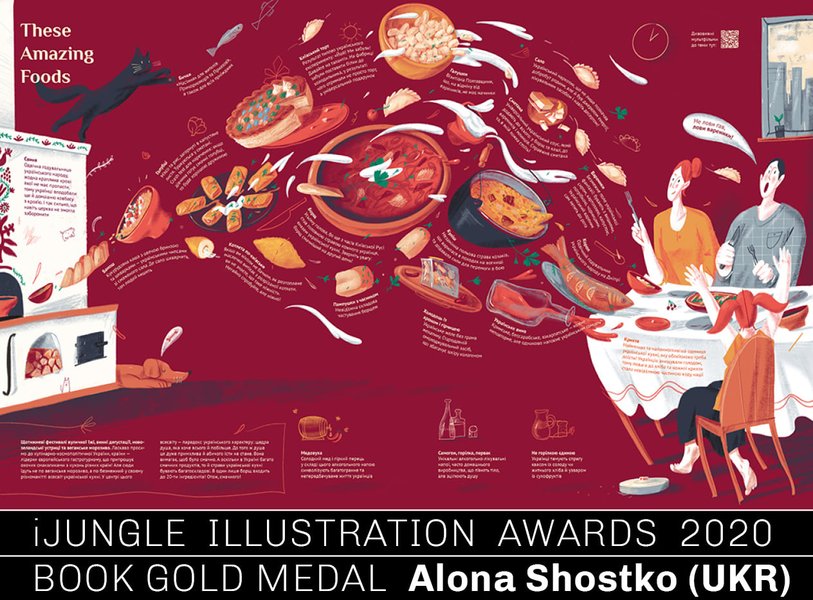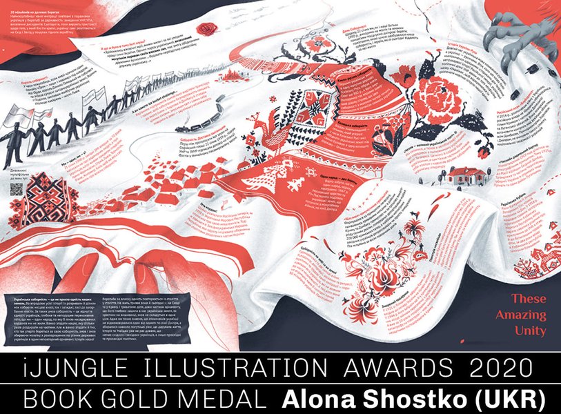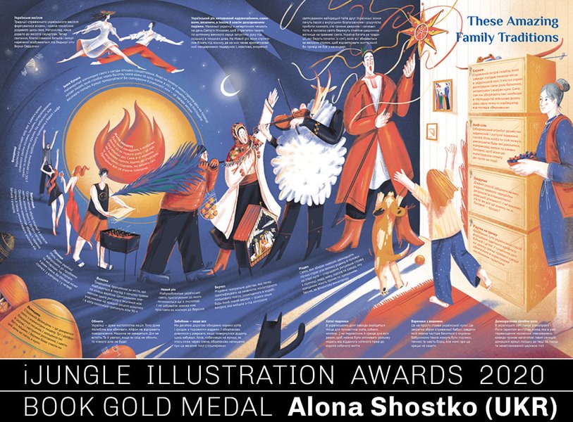 Олена Шостко з Харкова виконала оформлення для книги "Ці дивовижні українці", в якій описується історія та культура України. Над проєктом вона працювала разом із колегою Владиславом Демченко. Її сьогодення та минуле. Сама ілюстраторка так коментує перемогу: "Чудова новина! Взяли золото за дизайн та ілюстрацію книги Ці дивовижні українці". Дуже рада!".
