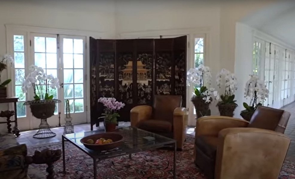 Більшість кімнат виконали у світлій колірній гамі. У будинку є велика вітальня з розкішним сходами і кухня з мармуровим острівцем посередині, шість спалень, десять ванних кімнат, власна бібліотека. На ділянці також розташовані будиночок для гостей, чайний будинок і великий тренажерний зал. Просторий внутрішній дворик веде у величезний ландшафтний сад з доглянутими деревами, розаріями і басейном у старовинному голлівудському стилі з арковими фонтанами.