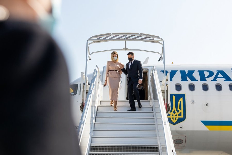 Дружина Володимира Зеленського традиційно вбралася в речі від українських майстрів, продемонструвавши любов до вітчизняних дизайнерів. Коли вона спускалася трапом літака, на ній був костюм ніжно-рожевого кольору бренду Lake Studio, що складається з приталеного жакета та спідниці-міді з шовку та кашеміру, з нової колекції THE SEEDS. Зазначимо, що перша леді найчастіше вибирає саме цю довжину.