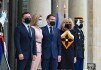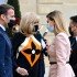 Що стосується вбрання дружини французького президента Бріжит Макрон, то вона вибрала для зустрічі темно-синю сукню від улюбленого нею Louis Vuitton, прикрашена впізнаваною монограмою бренду.