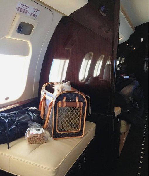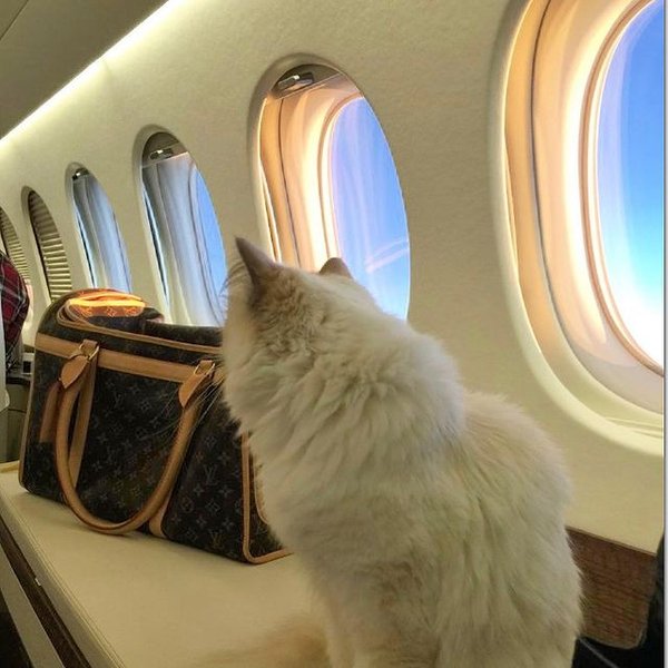 Під час перельотів на приватному літаку, за наполяганням Лагерфельда, кішка повинна була знаходитися на колінах у пілота. Тварину переносили в сумці Louis Vuitton, а господар розробив для неї спеціальний футляр, де зберігалися щітки і срібний посуд.
