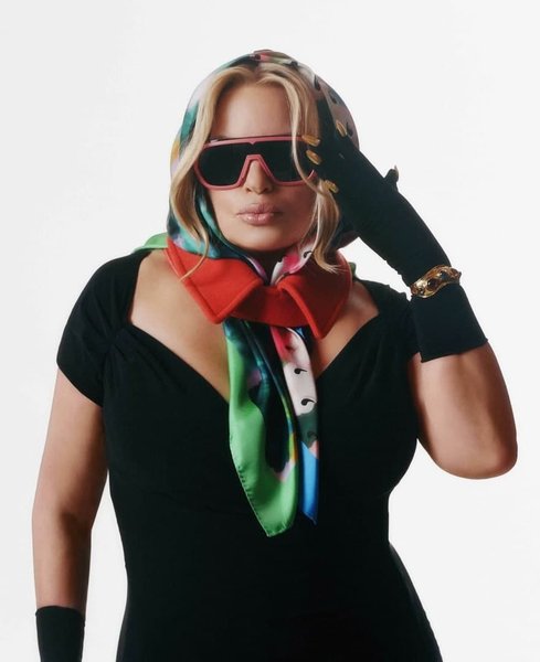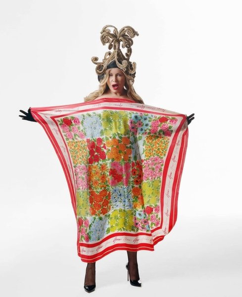 Знаменитість позувала в чорній сукні з декольте, а образи розбавляла шарфами і хустками знаменитих і дуже недешевих брендів, таких як Burberry ($ 450), Isabel Marant ($ 270), Versace, Mary Katrantzou x Bvlgari ($ 520), Dior ($ 520), Maison Margiela ($ 990), Balenciaga ($ 695), Gucci ($ 700) і MIU MIU.
