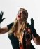На особливу увагу заслуговують чорні рукавички із золотими накладними нігтями, що роблять образ актриси фатальним і якоюсь мірою страхітливим.