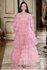 Джорджіо використовував для колекції яскраві кольори, перетворивши відтінки і текстури на модні, суворо ярусні сукні, додавши грандіозні акценти, такі як рожева, інкрустована пір'ям накидка із шовкової органзи або бузковий жакет із вишивкою на краях.