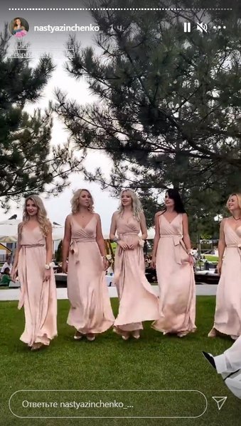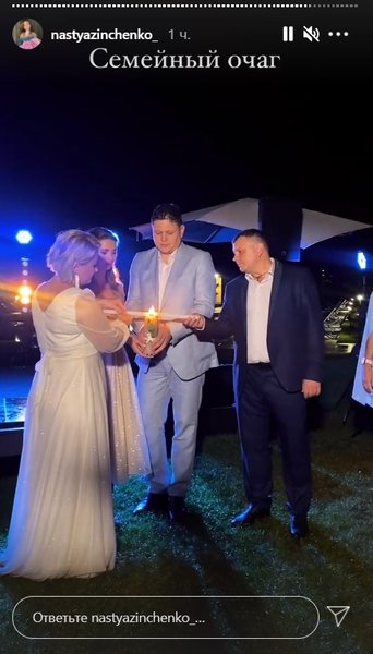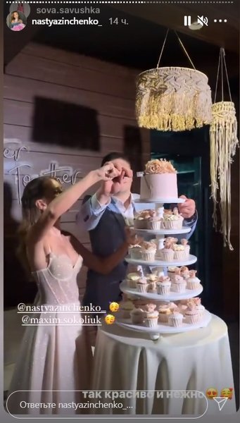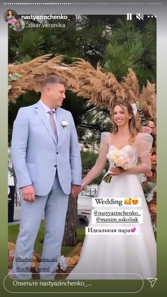 У сторіз наречена поділилася кадрами підготовки до торжества, бекстейджем весільної фотосесії, а також моментами церемонії і святкування, яке проходило в ресторані на свіжому повітрі в затишній і теплій обстановці.