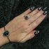 Але виявилося, що манікюр у готичному стилі — чорний лак, загострені нігті, як у перевертнів, — відмінно виглядає і на руках дівчат, далеких від гот-культури. А якщо доповнити їх срібними прикрасами, то вийде ідеальний образ на Геловін 2021.